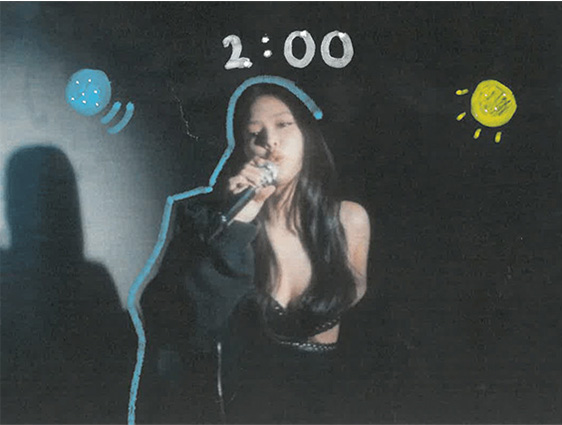 A multimedia animation. Made using printed frames, analog alterations, rescanning and video editing. For Love Hangover, JENNIE (2025).
